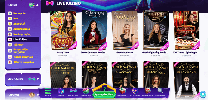 Εκτός από τους κουλοχέρηδες, προσφέρουμε επίσης μια ποικιλία κλασικών παιχνιδιών καζίνο, όπως blackjack, ρουλέτα, μπακαρά και πόκερ, τόσο σε ψηφιακές όσο και σε ζωντανές εκδόσεις. Τα παιχνίδια μας με ζωντανούς διανομείς προσφέρουν μια αληθινή εμπειρία καζίνο, με επαγγελματίες διανομείς και υψηλή ποιότητα παρουσίασης.