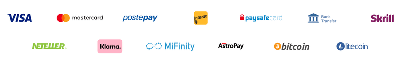 Μέθοδοι κατάθεσης Visa, MasterCard, CashtoCode, Trustly, Skrill, Neteller, Paysafe Card, EcoPayz, Klarna Instant Bank Transfer, eZeeWallet, Bitcoin, Ethereum, Litecoin