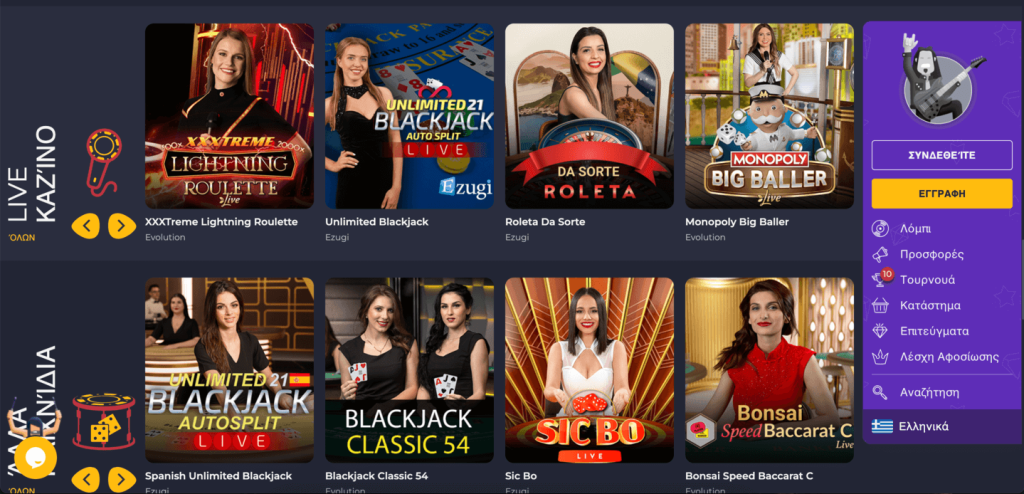 Από πολλά τραπέζια ρουλέτας και μπλακτζάκ με διαφορετικά όρια πονταρίσματος, μέχρι γνωστά shows όπως το Crazy Time και το Mega Ball, το συγκεκριμένο καζίνο προσφέρει ότι ακριβώς θέλει ένας παίκτης.